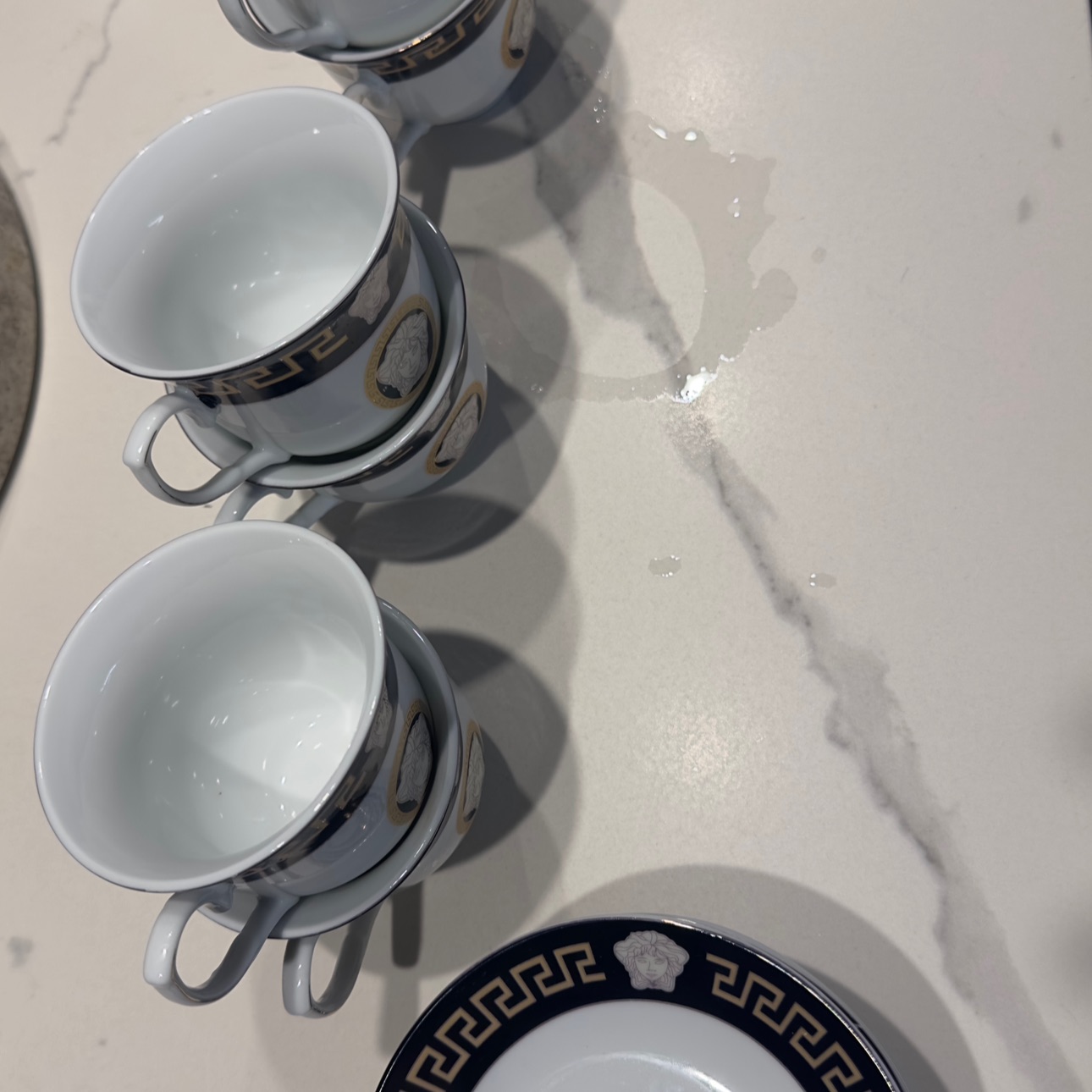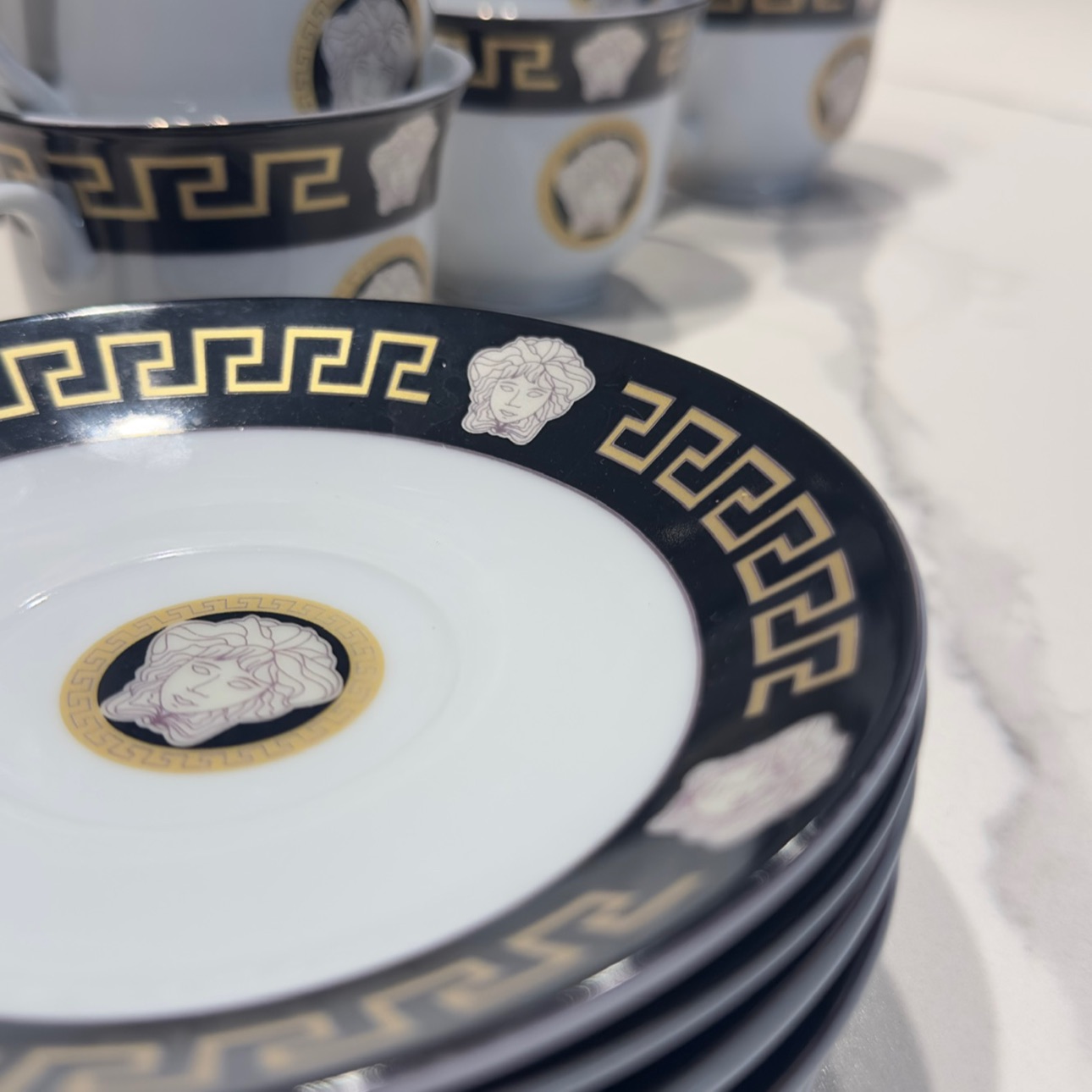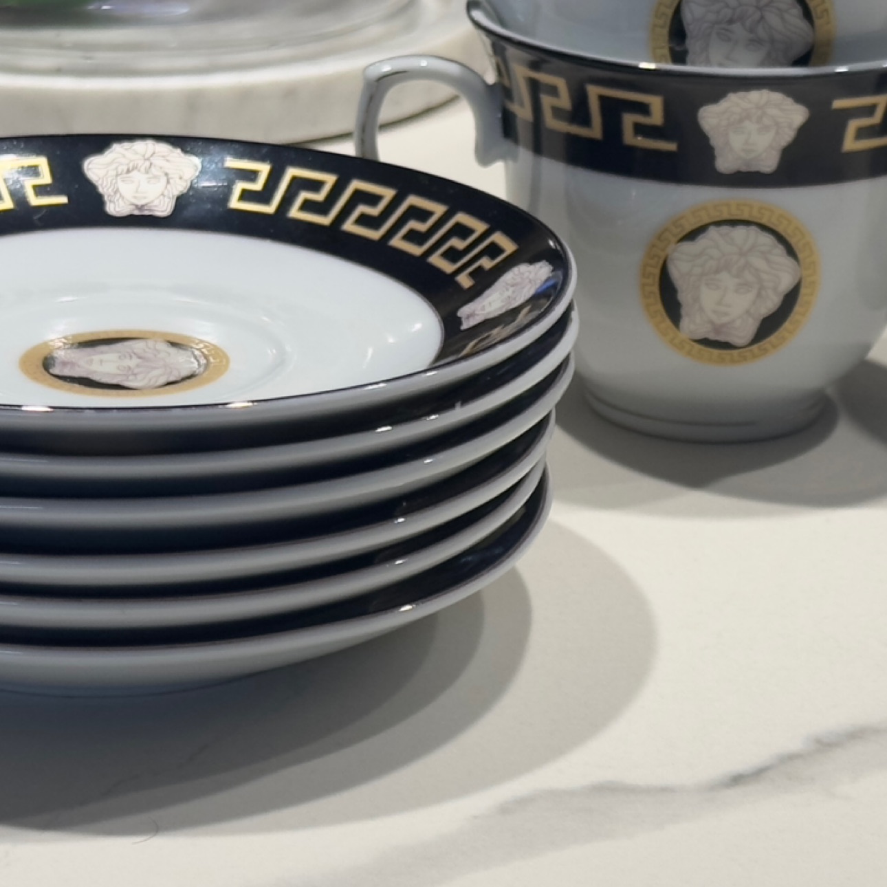 סט של 6 כוסות קפה/תה של ורסצ׳ה , הסט מגיע עם הכוסות והצלוחיות שלו. נמכר בעקבות שדרוג המשרד.