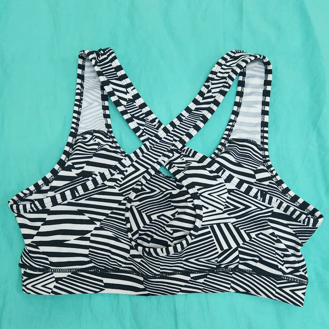 גוזיית ספורט מבד איכותי, מעוצבת בדוגמת זברה, שחור לבן, עם איקס בגב, מגיע עם קאפים נשלפים.