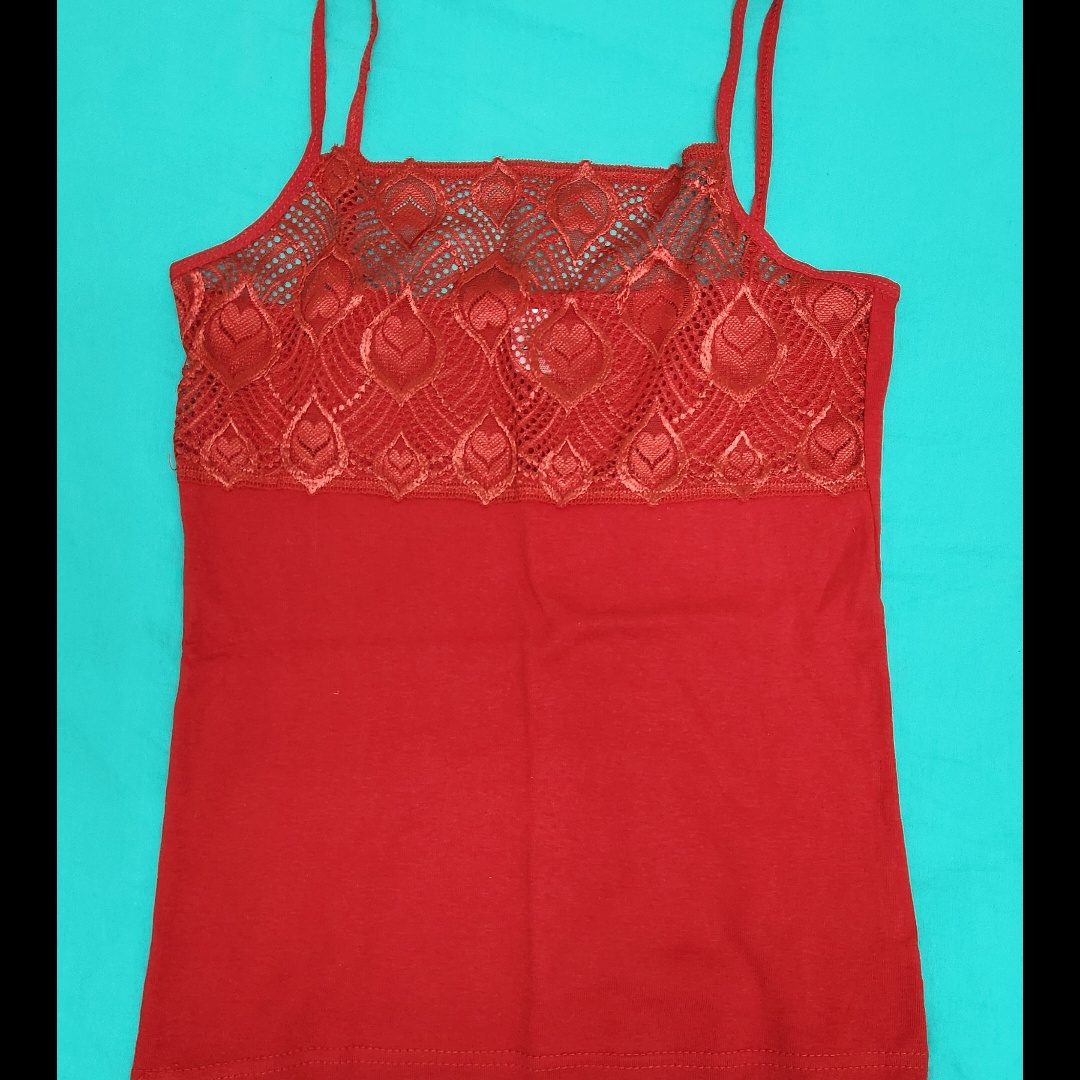 גופייה אדומה מעוצבת עם דוגמת דנטל של עלי טווס, מהממת