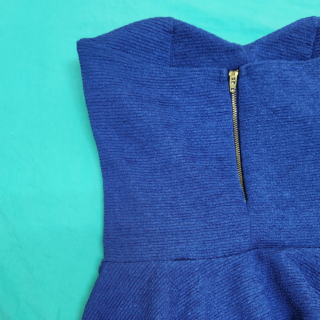 סטרפלס כחולה ליציאה בערב, עם קאפ ניתן ללבוש ללא חזייה