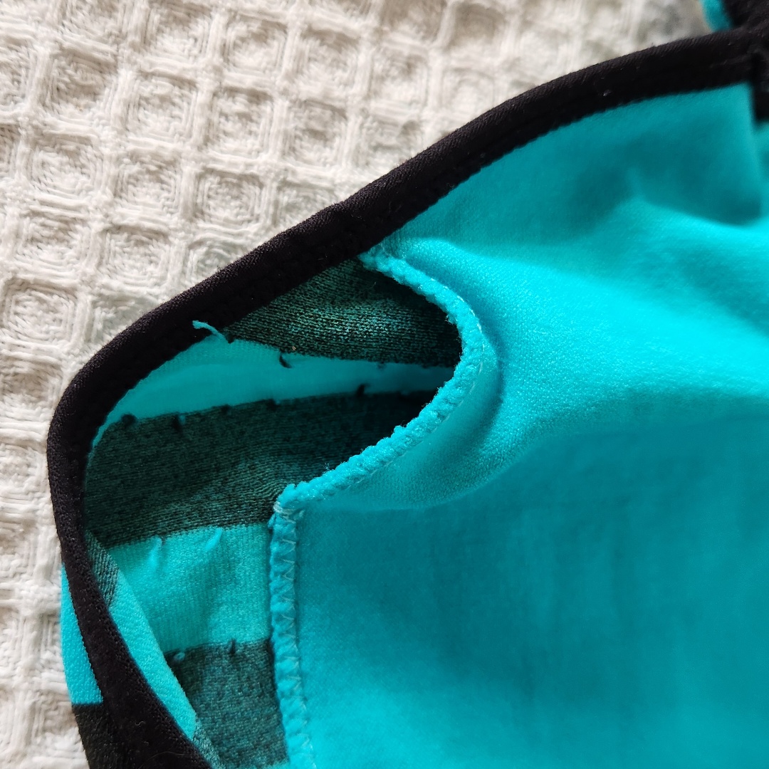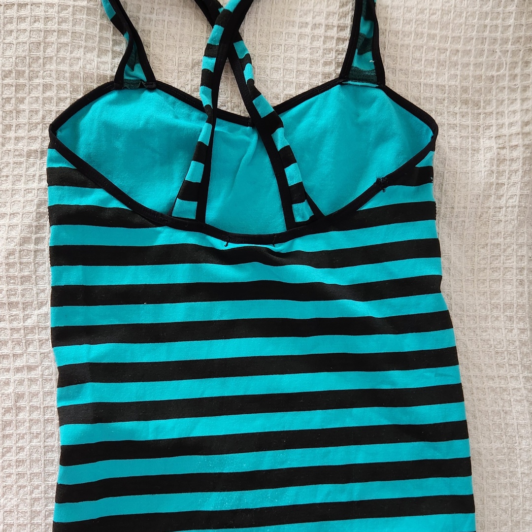 גופיית פסים, טורקיז- שחור, מבד נמתח ומחטב, עם איקס בגב, ניתן לשם קאפ וניתן ללבוש גם ללא