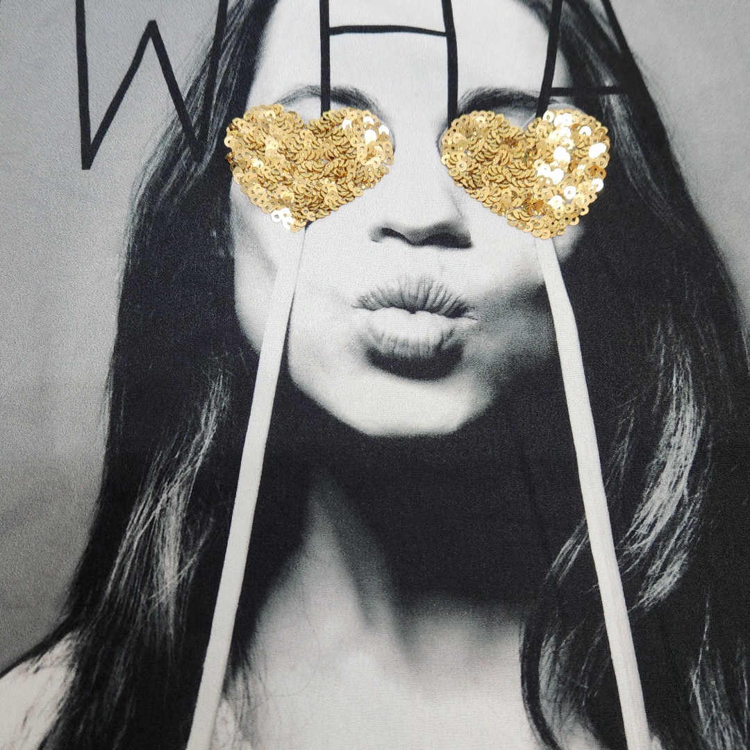 חולצה שחורה מעוצבת עם הדפס ופייטים, מהממת