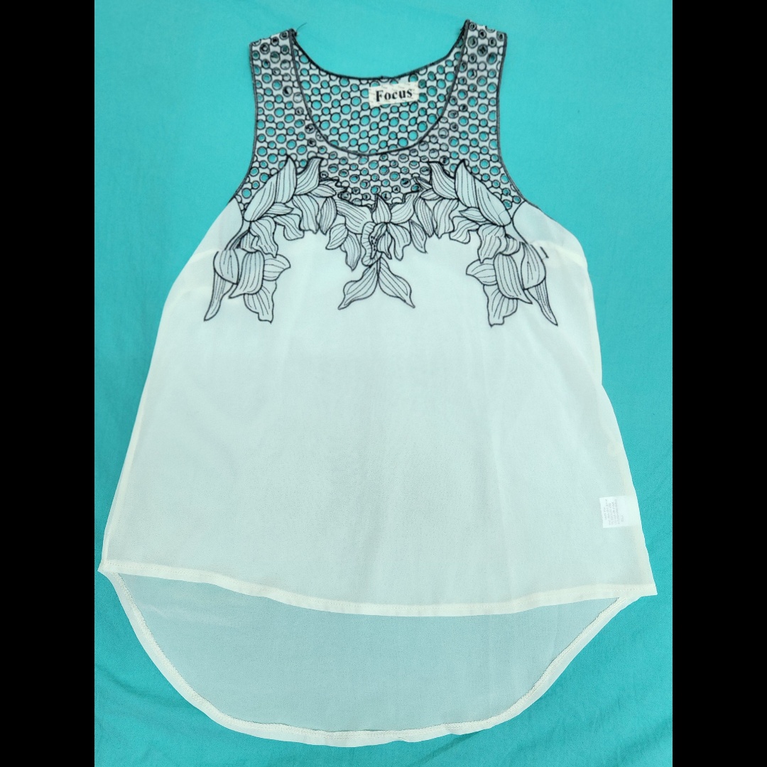 גופייה בצבע בז' מעט שקפקף, עם תחרה ודיטלינג פרחוני שחור, אלגנטית ויפה על הגוף