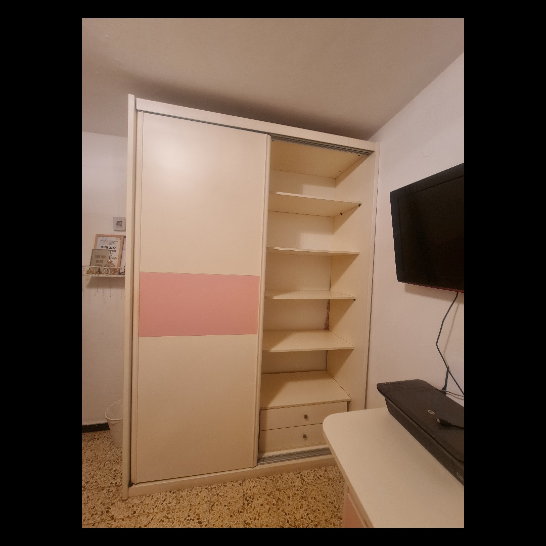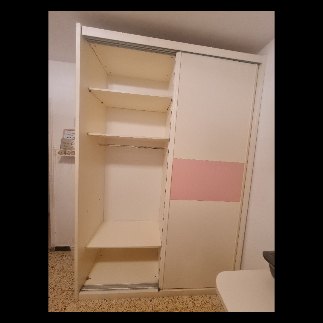 4 דלתות, 160×200×60, עץ מלא, צבע שמנת, פס ורוד