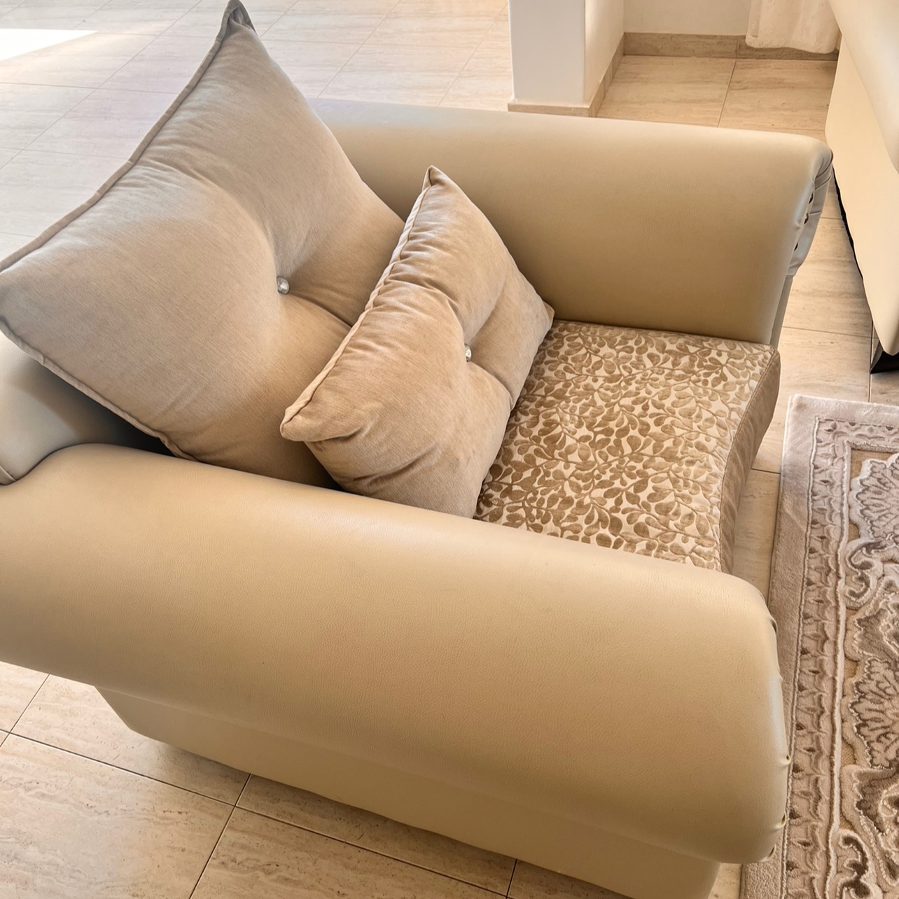 סלון דמוי עור בשילוב בד במצב מצויין